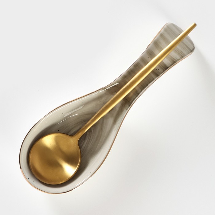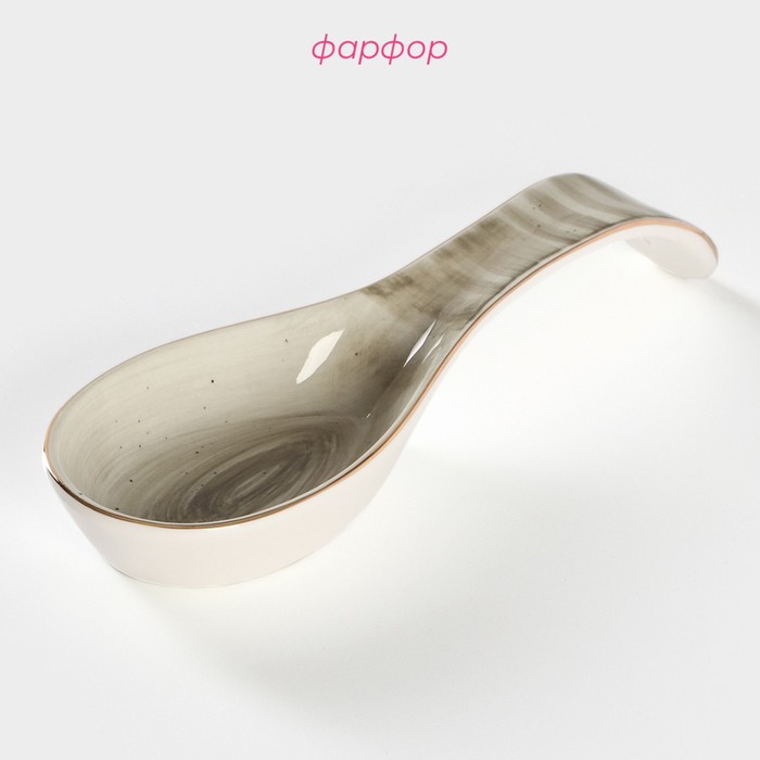 Подставка фарфоровая под ложку Доляна «Млечный путь», 21.5×7.5×3.5 см, цвет серый — Характеристики