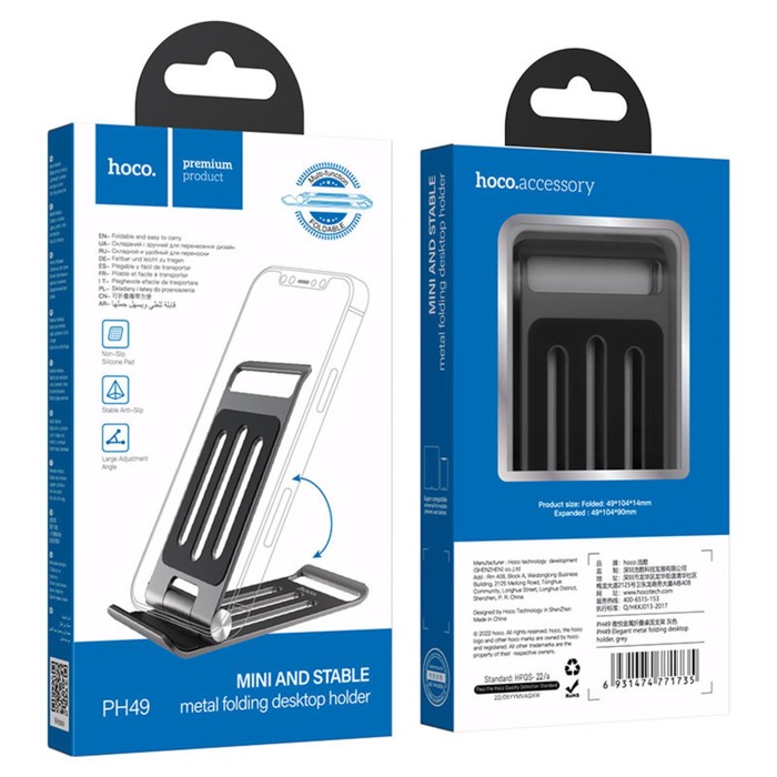Подставка Hoco PH49, настольная, металлический, 4.7-10,5 дюймов, серый — Характеристики