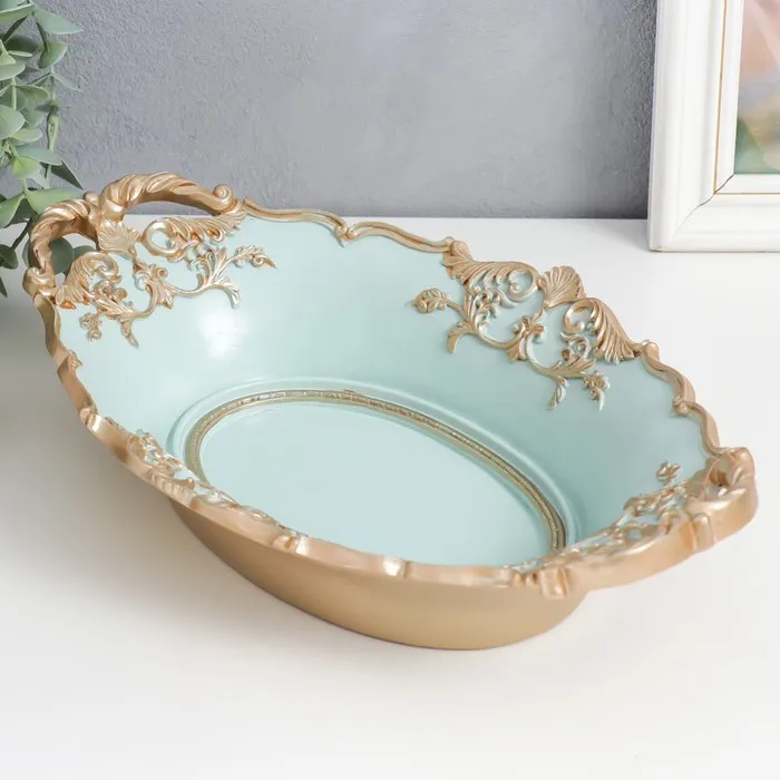 Подставка интерьерная полистоун "Золотистые узоры" голубая 32х20х6 см