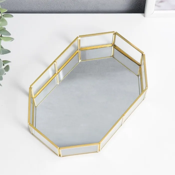 Подставка интерьерная стекло с зеркалом "Овал с гранями" 4,5х14х20 см