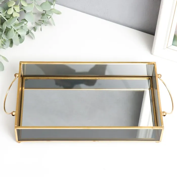 Подставка интерьерная стекло с зеркалом прямоугольная "Затемнённая" с ручками 5х14х24 см