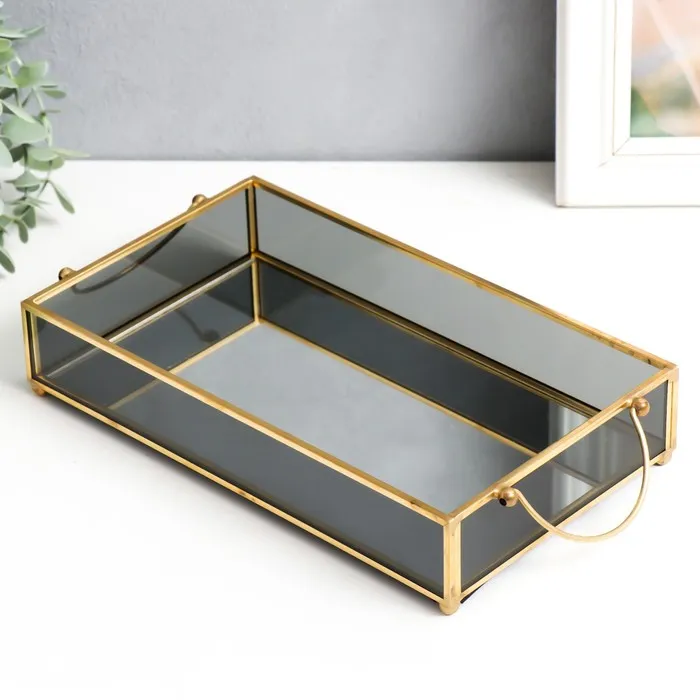 Подставка интерьерная стекло с зеркалом прямоугольная "Затемнённая" с ручками 5х14х24 см — Характеристики