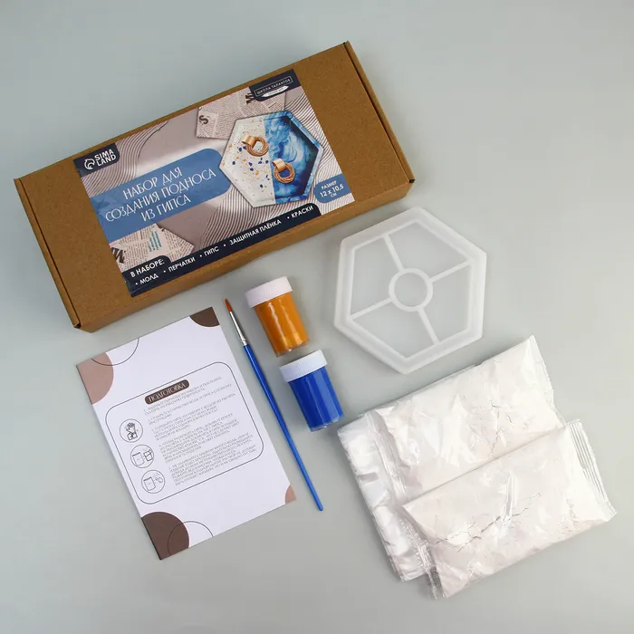 Подставка из гипса. Набор для создания поддона с красками «Шестиугольник» — Характеристики