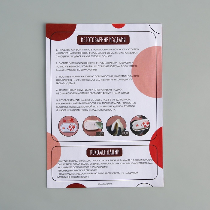 Подставка из гипса. Набор для создания поддона с сухоцветами «Овал» — Характеристики