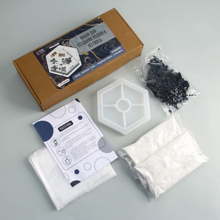Подставка из гипса. Набор для создания поддона с сухоцветами «Шестиугольник» — Характеристики