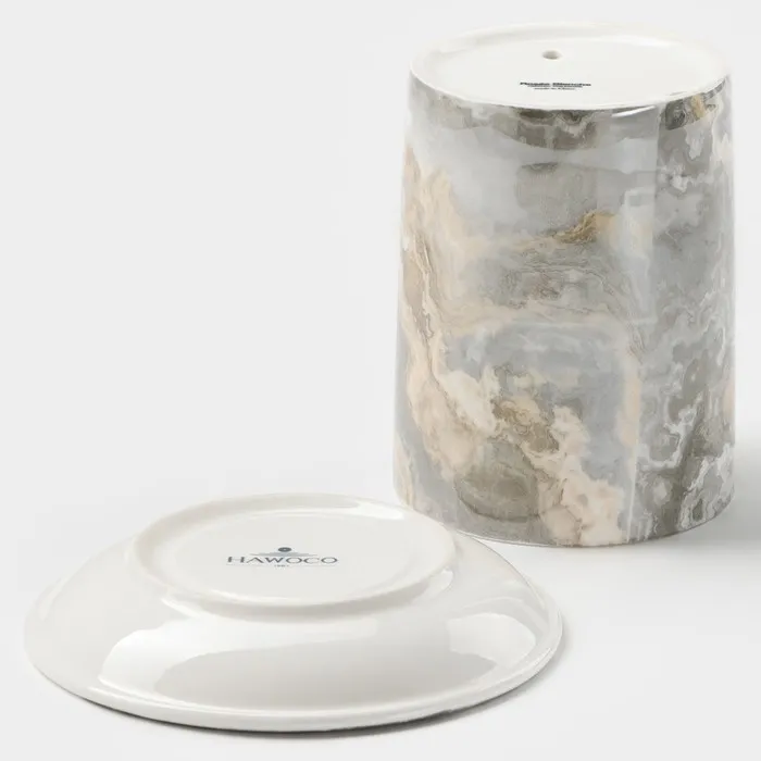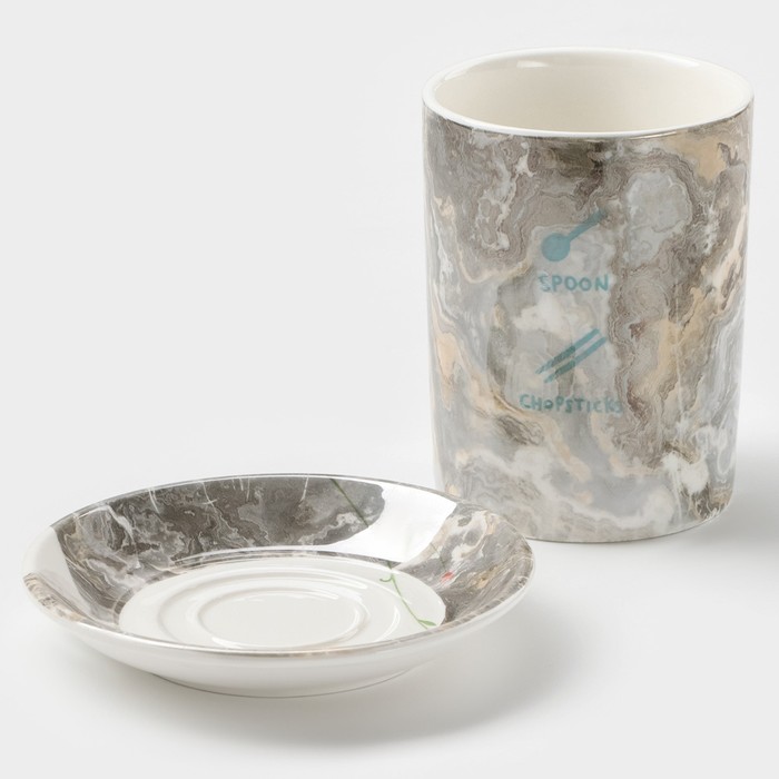 Подставка для столовых приборов изготовлена из качественной керамики. Кухонные изделия из керамики отличаются надёжностью, устойчивы к появлению царапин и перепадам температур. Благодаря оригинальному дизайну с эффектом мрамора изделие отлично впишется в интерьер вашей кухни и станет незаменимой вещью.