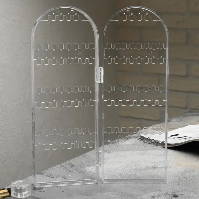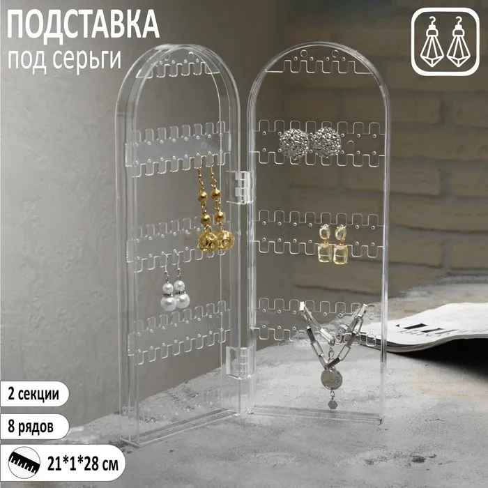 Подставка-книжка под серьги, 2 секции, 8 рядов, 21×1×28 см цвет прозрачный,