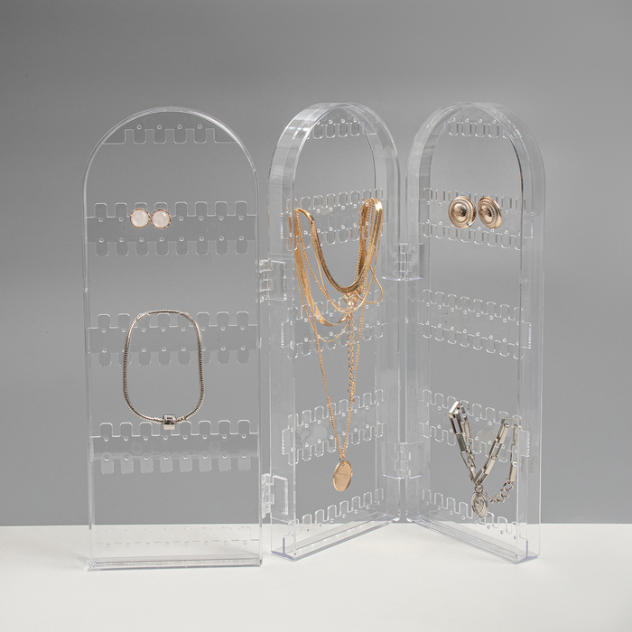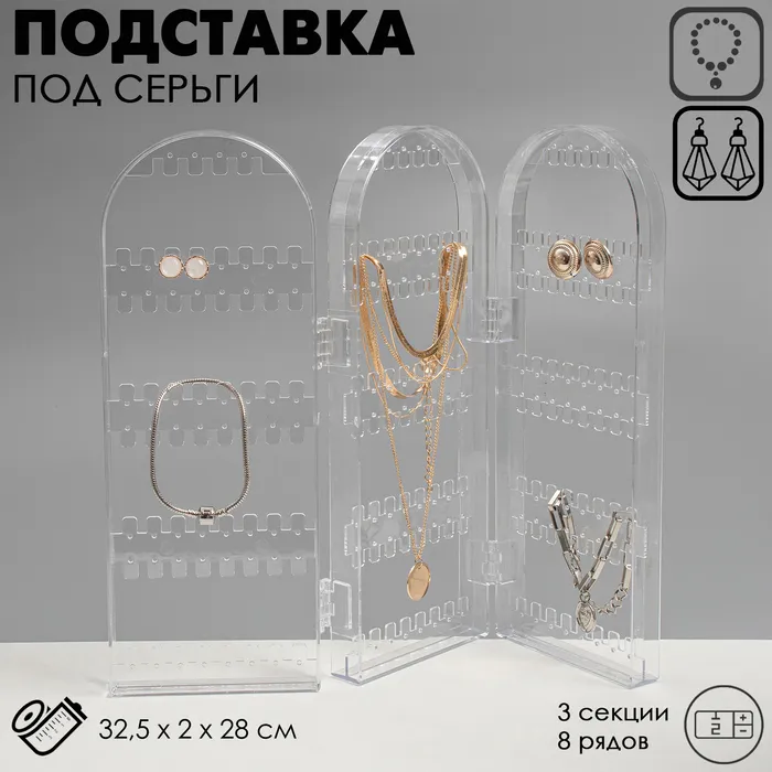 Подставка-книжка под серьги, 3 секции, 8 рядов, 32.5×2×28 см, прозрачная — Характеристики