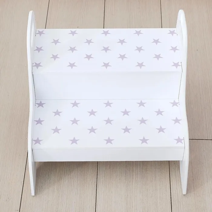 Подставка на две ступеньки послужит функциональным украшением для детской комнаты, а своим интересным дизайном привлечёт внимание ребёнка.
