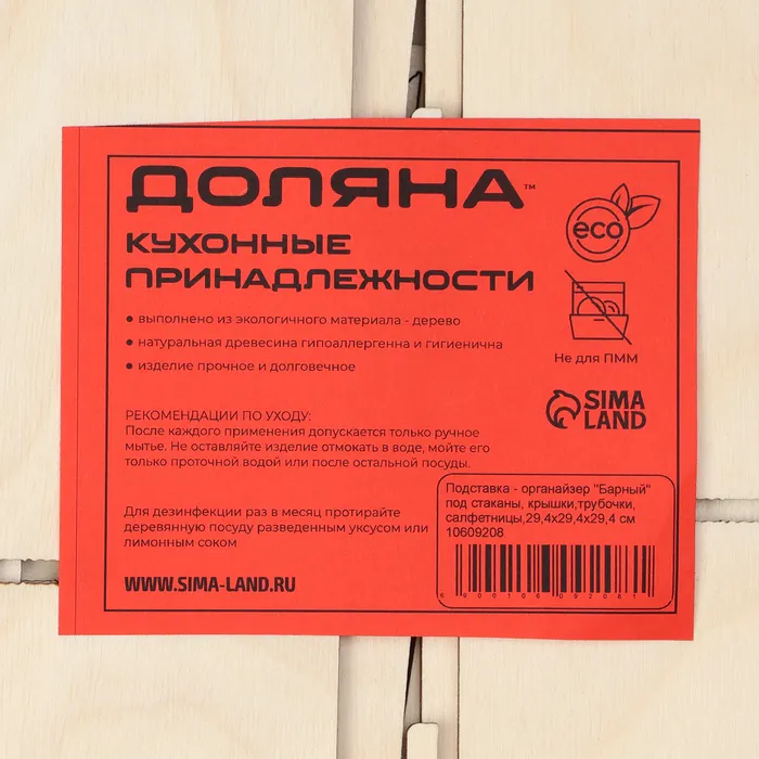 Подставка - органайзер деревянный Доляна «Барный», под стаканы, крышки, трубочки, салфетки, 29,4×29,4×29,4 см — Характеристики