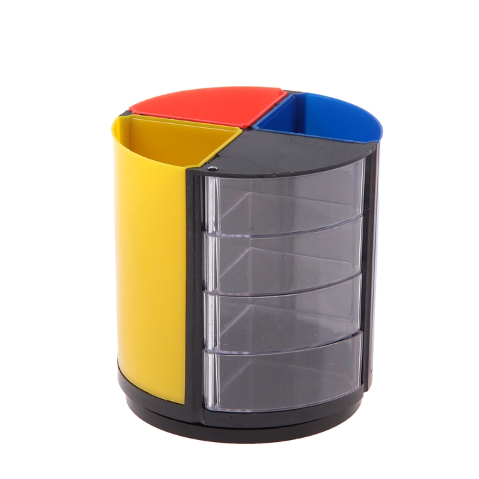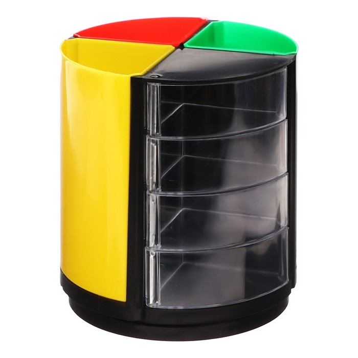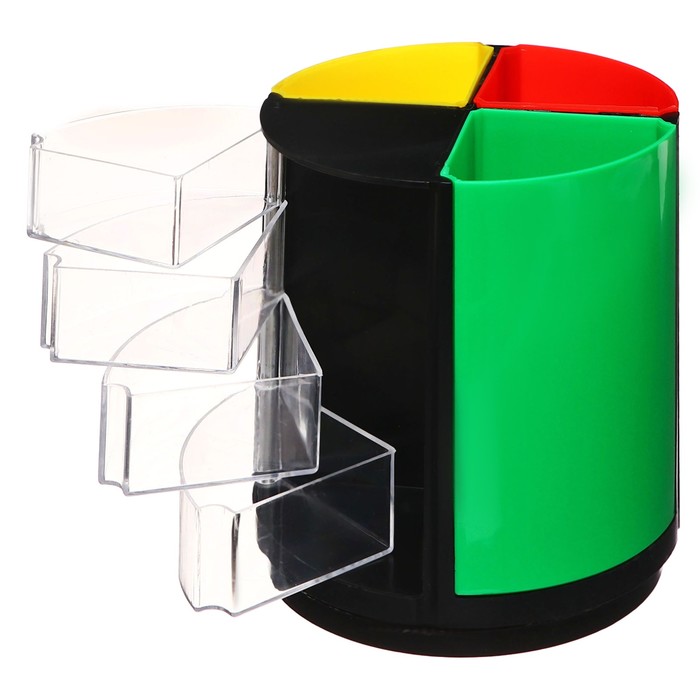 Подставка-органайзер для канцелярии Дольки с выдвижными отделениями, вращающаяся, микс — Характеристики