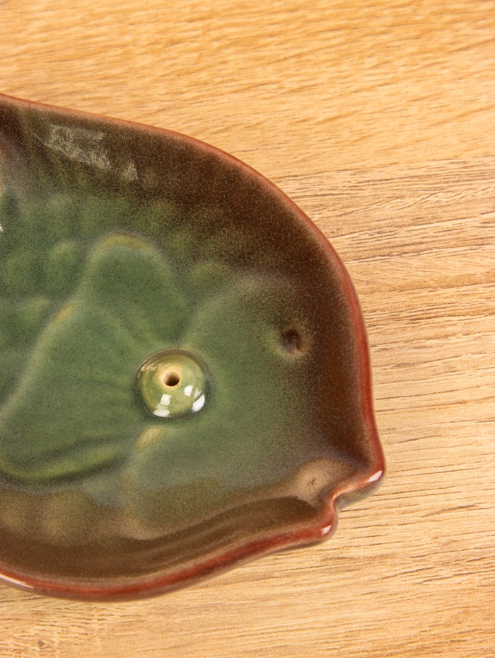 Подставка под благовония «Экзотическая рыбка», 10×14×2 см, керамика, зелёная