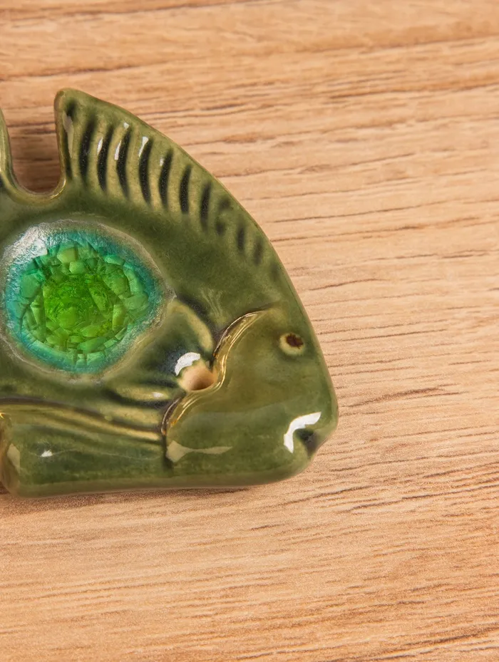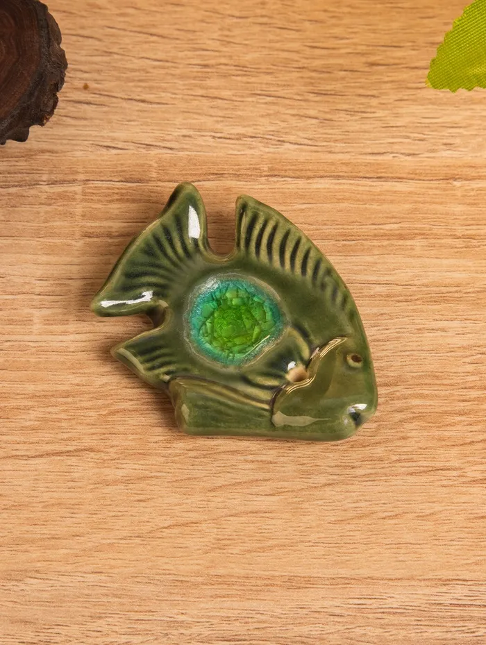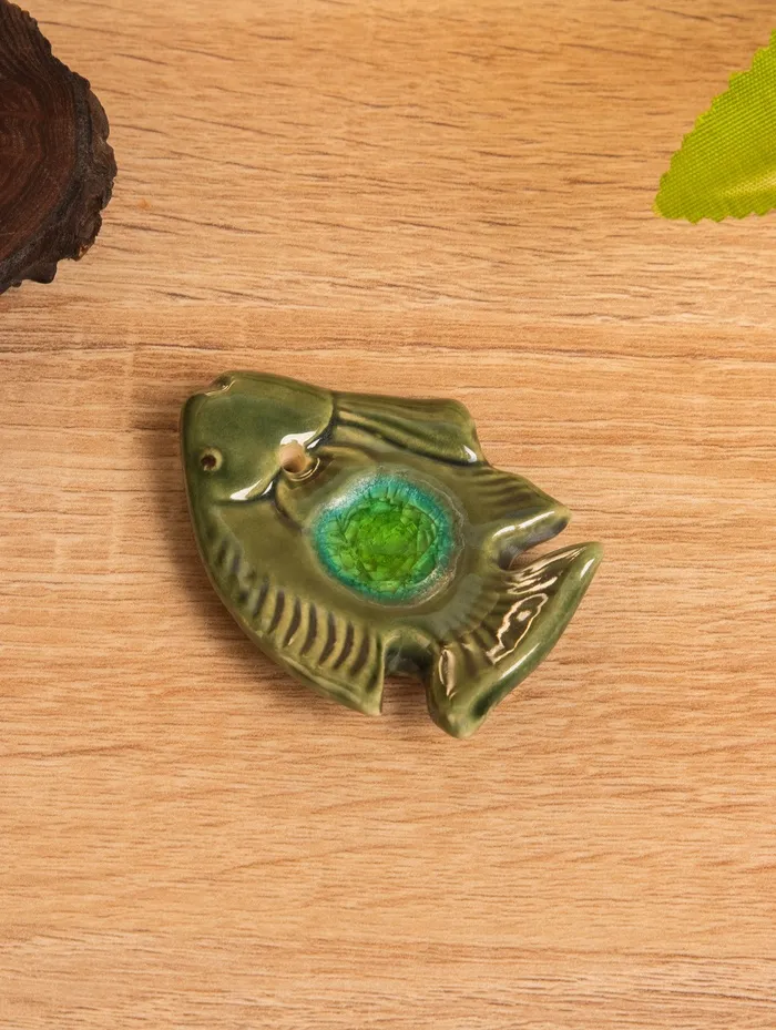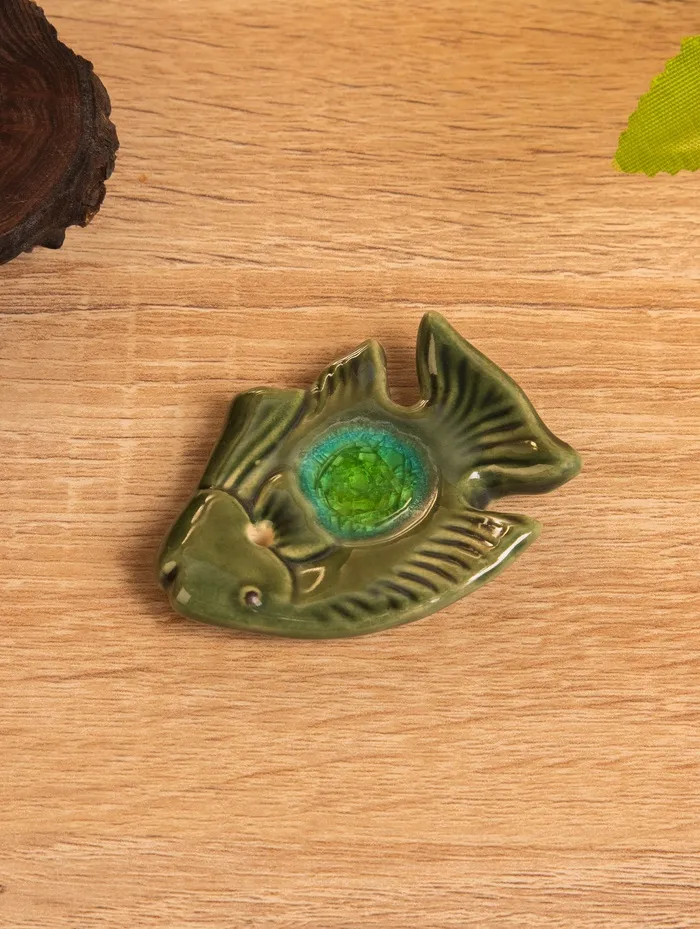 Подставка под благовония "Экзотическая рыбка" керамика, цв. зелёный, 6х5х1 см
