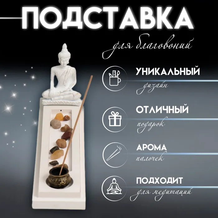 Подставка для благовоний с аромапалочками «Будда», полистоун, сад камней, 29×7×12.2 см
