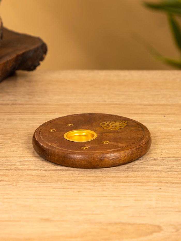 Круглая деревянная подставка для палочек благовоний — маленький элемент, который меняет ритм дня. Из шишама — твёрдого, тёплого дерева с естественным рисунком — она выглядит не как аксессуар, а как часть пространства. Диаметр 8 см — достаточно компактно, чтобы стоять на полке, столе или рядом с ковриком для медитации, но достаточно основательно, чтобы держать палочку надёжно.