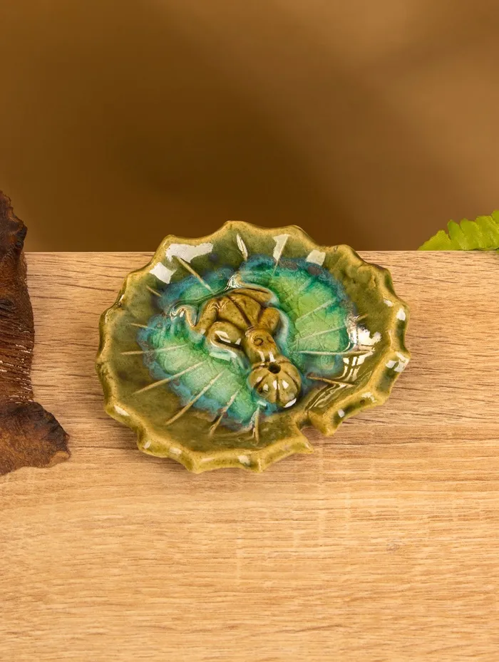 Подставка под благовония «Лягушка на кувшинке», 9×10×1.5 см, керамика, зелёная