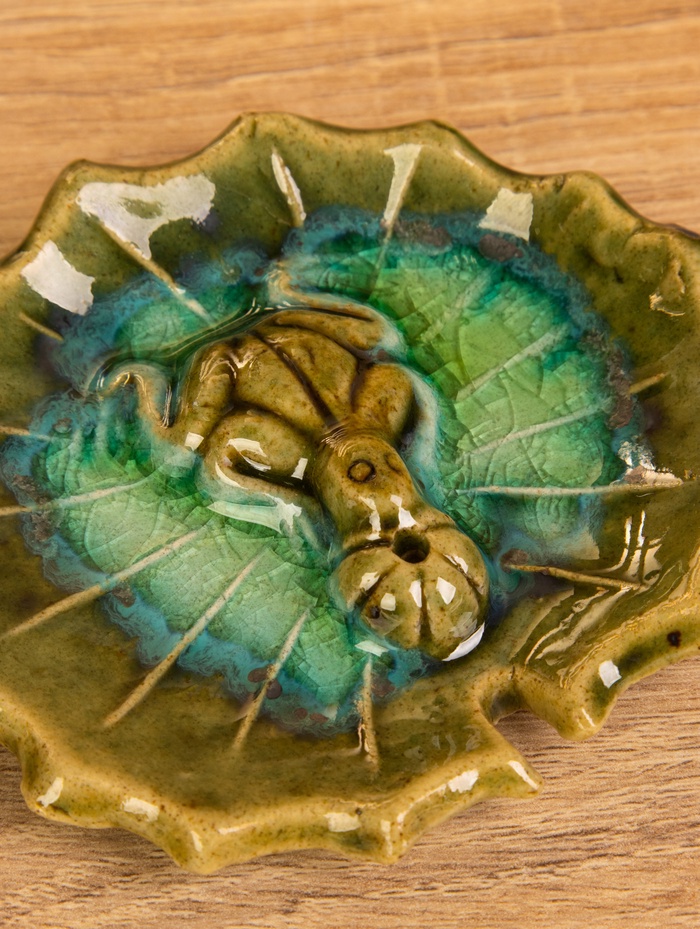 Подставка под благовония «Лягушка на кувшинке», 9×10×1.5 см, керамика, зелёная — Характеристики