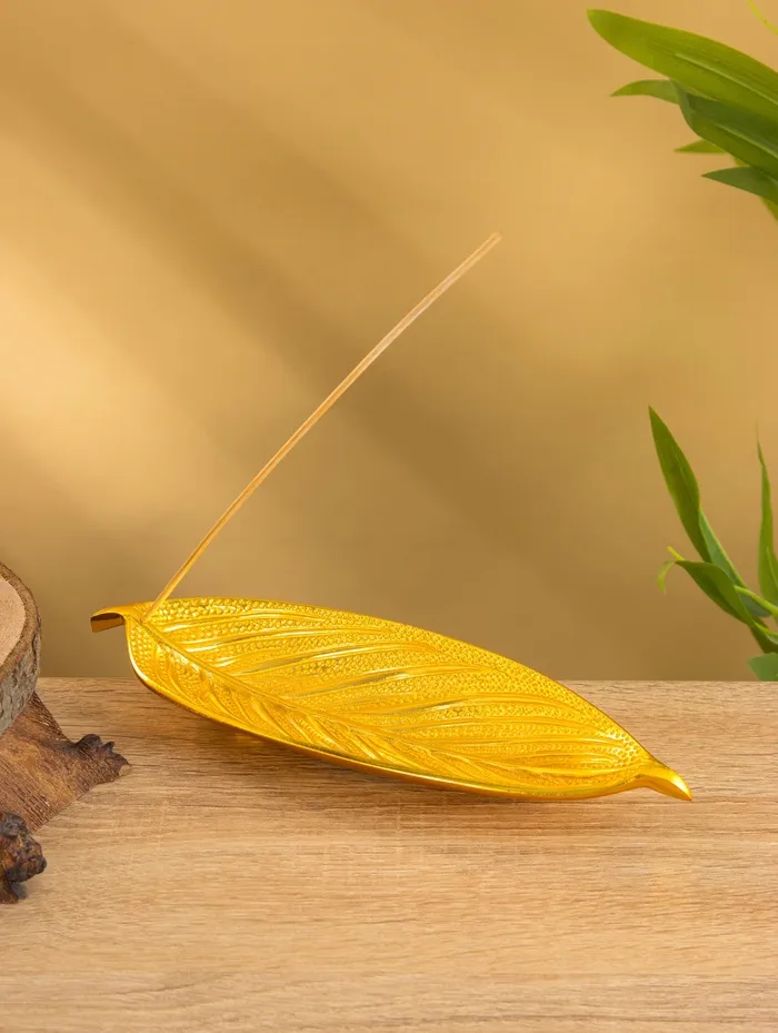 Подставка под благовония «Лист», 23.5×8.5×2.5 см, алюминий, золотая