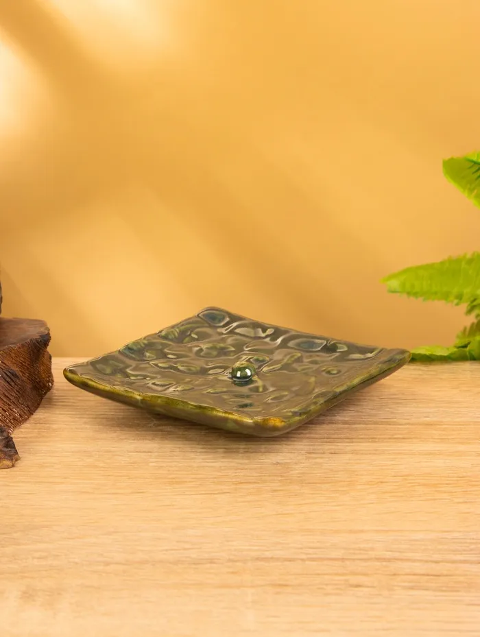 Подставка под благовония «Листва» керамика, 10×10×2 см, керамика, зелёная