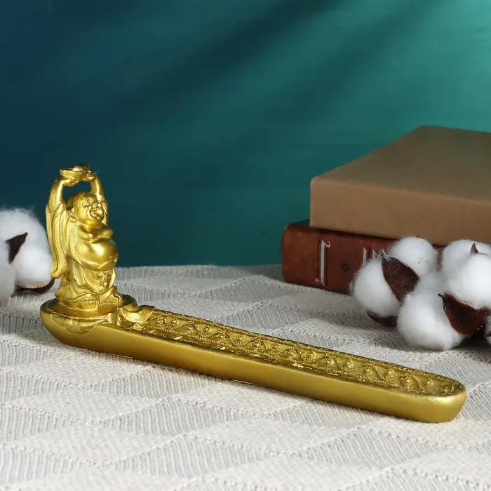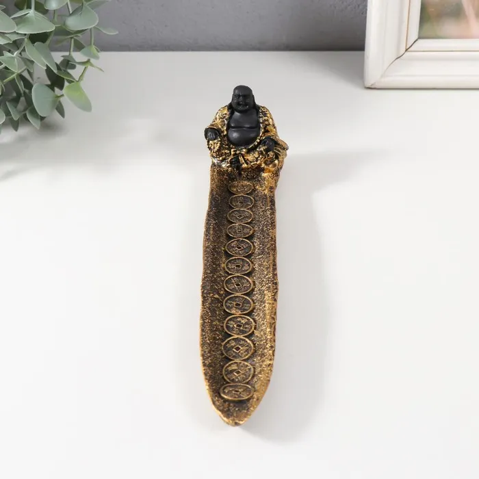 Подставка для благовоний «Хотей в золотом халате», полистоун, золото, 22.5×4.5×5 см