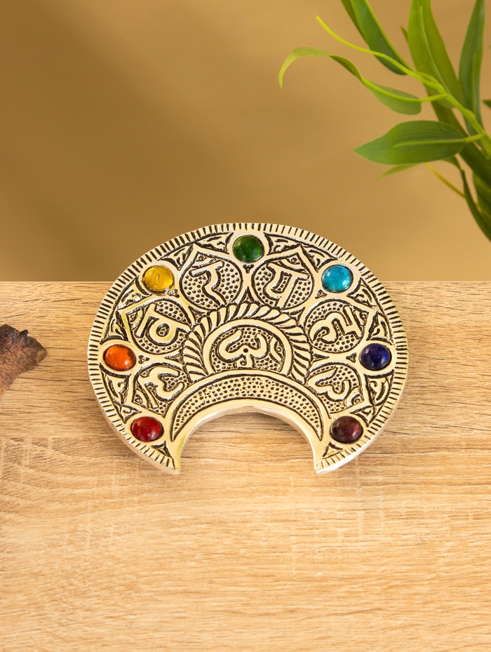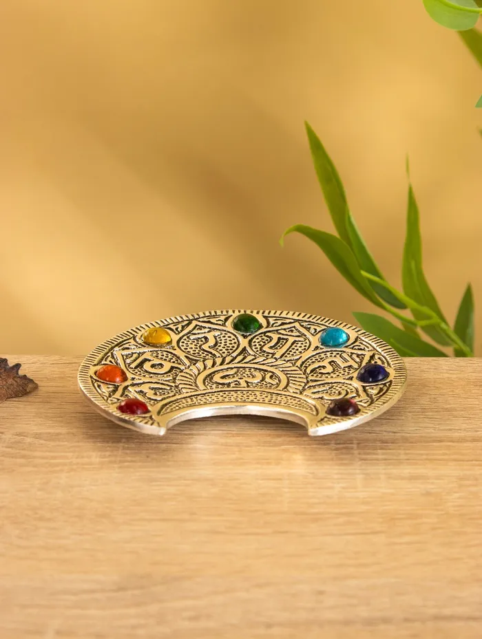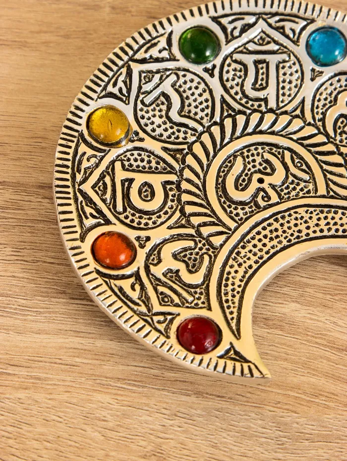 Подставка под благовония «Полумесяц с цветными кристаллами», 12×11 см, алюминий