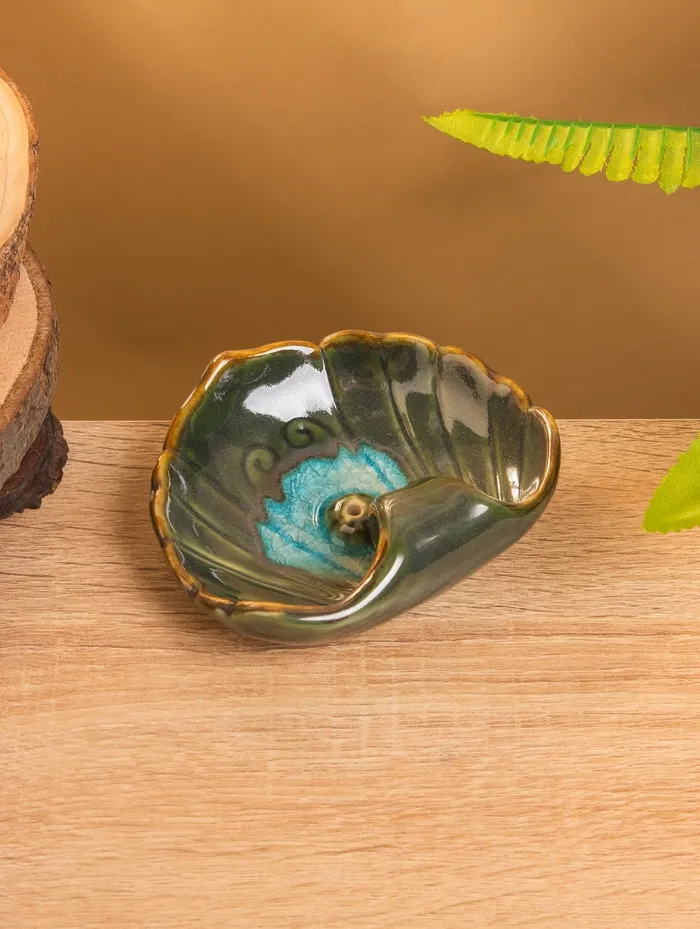 Подставка под благовония "Раковина с жемчужиной" керамика, цв. зелёный, 9х10,5х2 см
