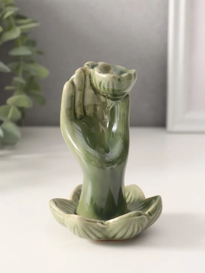 Подставка для благовоний керамика "Цветок в руке" 7,5х7,5х10,5 см