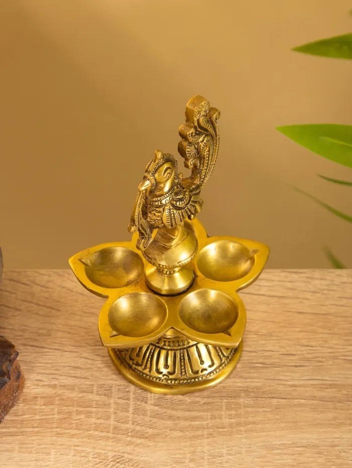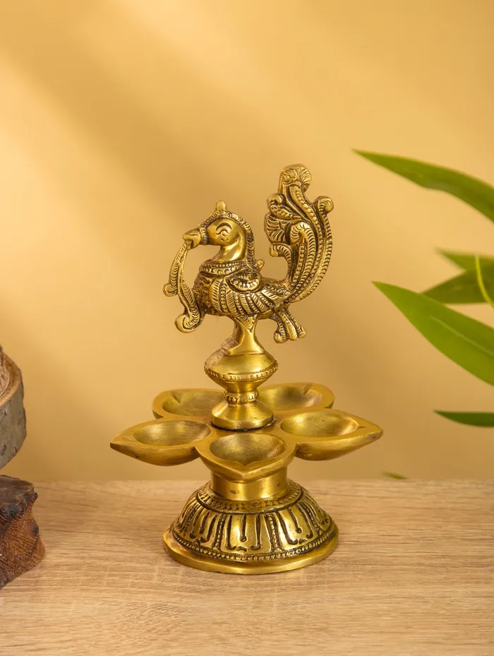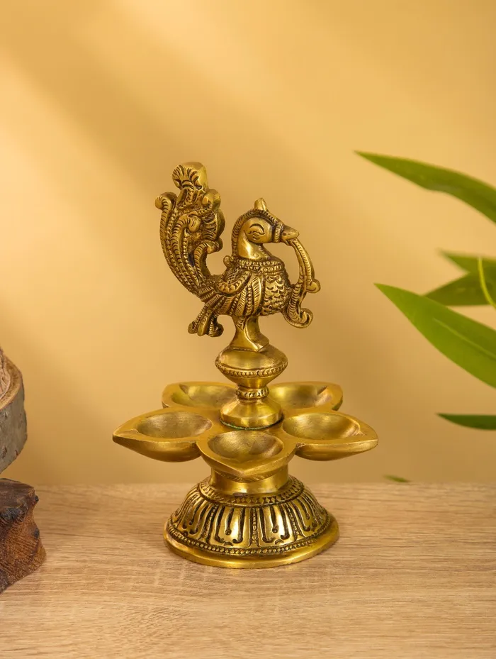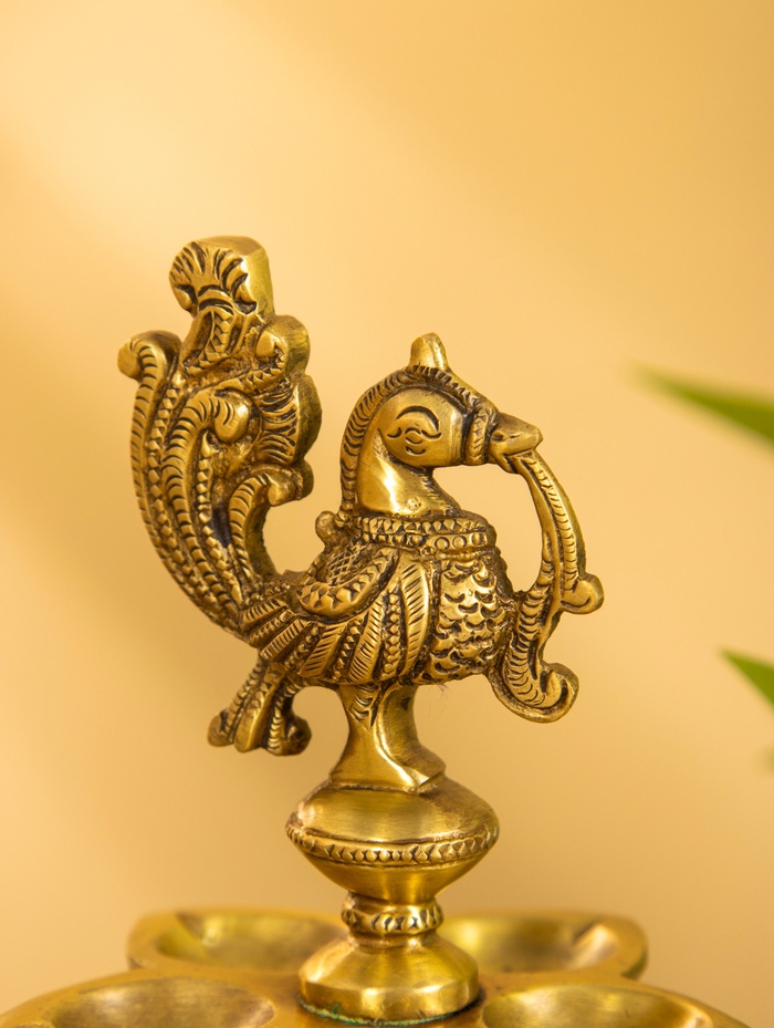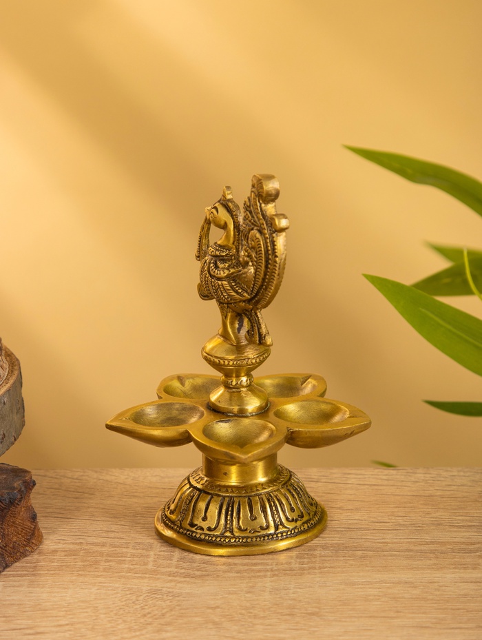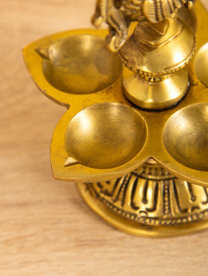 Подставка под благовония с 5 лепестками "Жар Птица" латунь 9,5х9,5х14 см