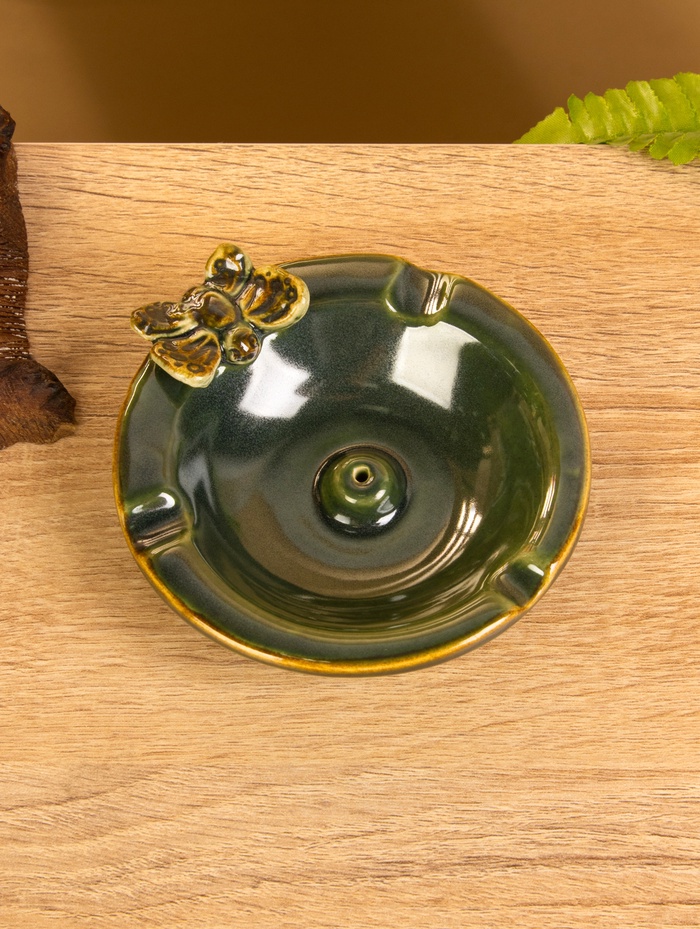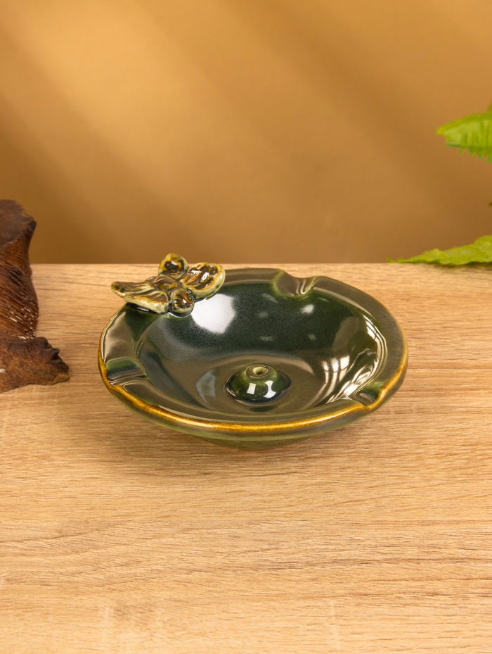 Подставка под благовония «Тарелка с бабочкой», 10×10×3 см, керамика, зелёная