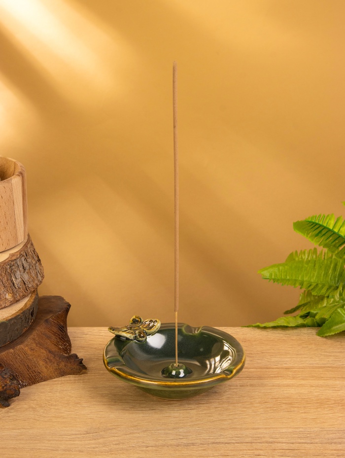 Подставка под благовония «Тарелка с бабочкой», 10×10×3 см, керамика, зелёная