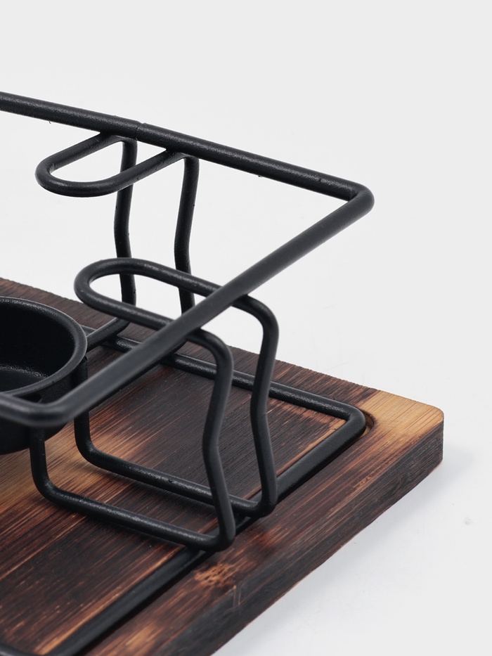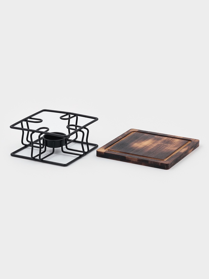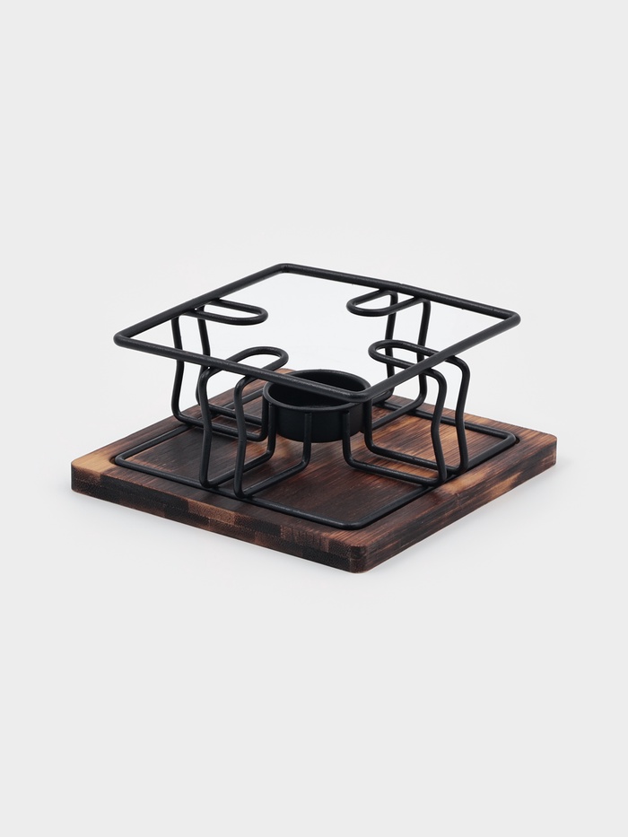 - Компактные габариты — 15×15×7,5 см: подставка устойчива, но при этом не занимает много места на столе. Высота продумана так, чтобы пламя не касалось дна посуды напрямую, но сохраняло напиток горячим.