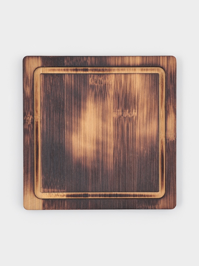 - Два материала: часть из нержавеющей стали равномерно распределяет тепло от свечи или таблетки, а верхняя — из натурального бамбука — не нагревается и не передаёт жар столешнице.