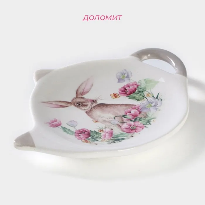 Подставка под чайный пакетик Доляна «Зайка», 12×9 см, цвет белый — Характеристики