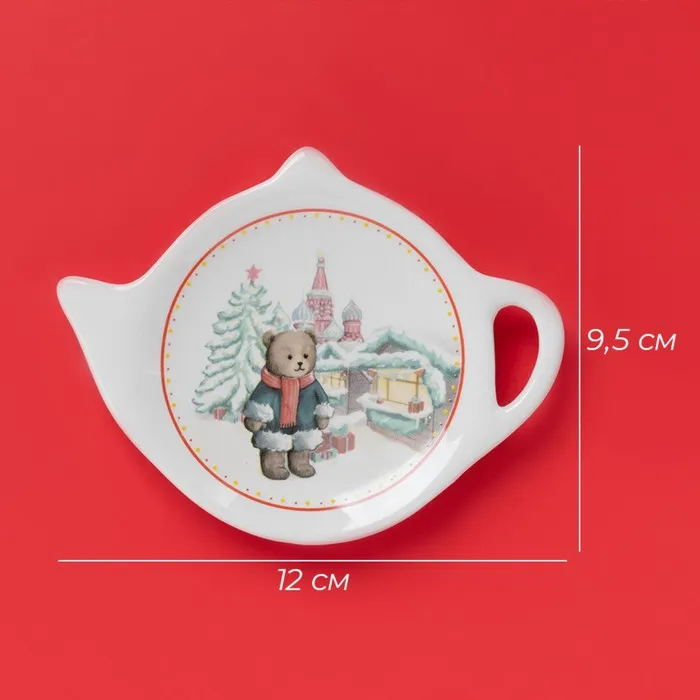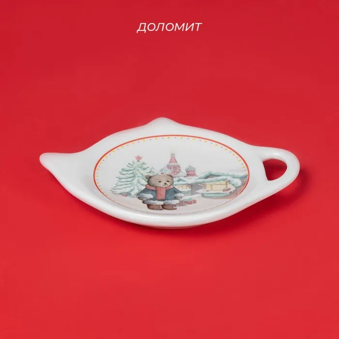 Подставка под чайный пакетик новогодняя Доляна «Московский мишка», керамика, 12×9,5 см, белая — Характеристики