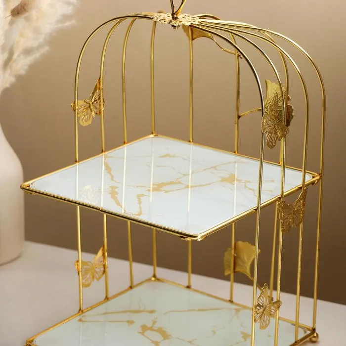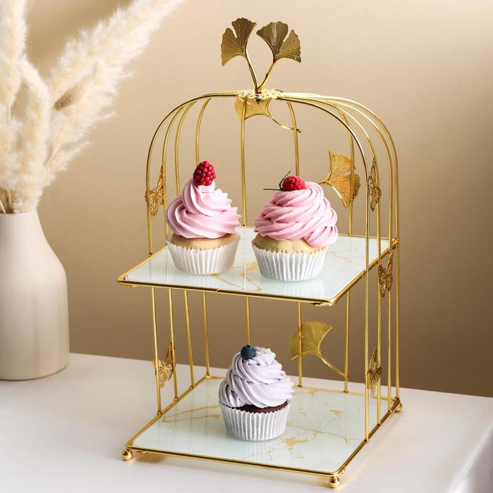 Подставка под десерты 2-х ярусная «Мрамор», 21×21×43 см, цвет металла золотой — Характеристики
