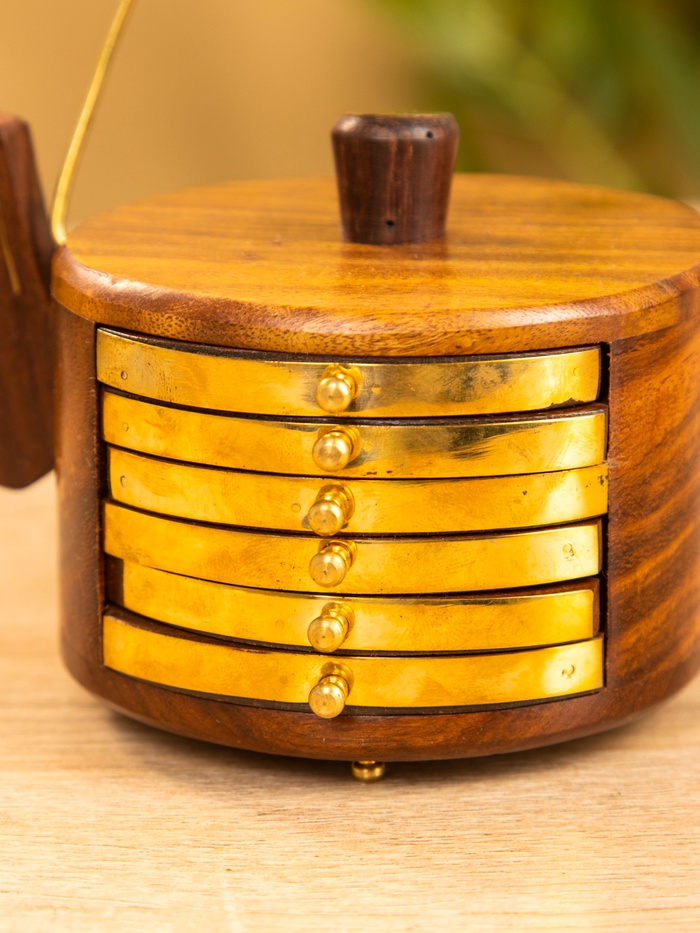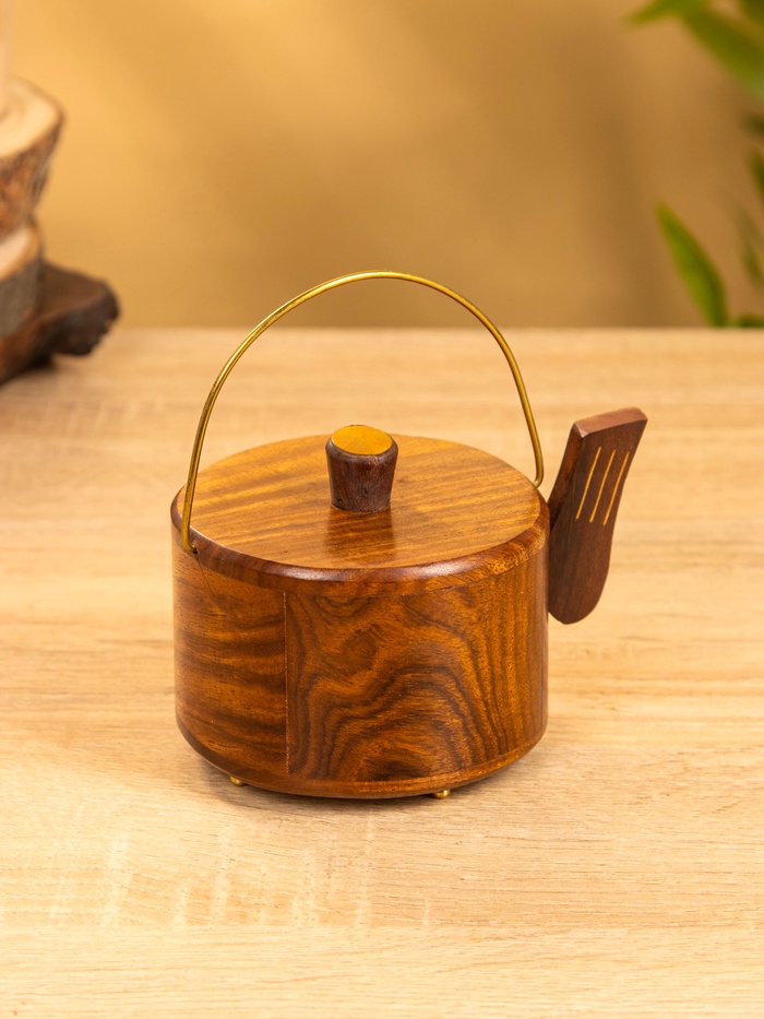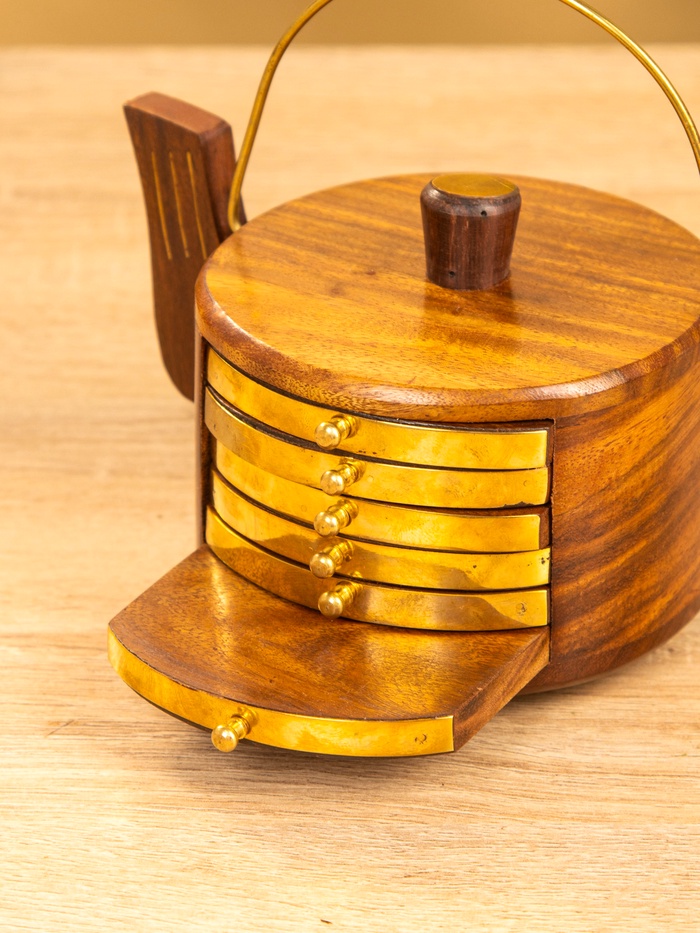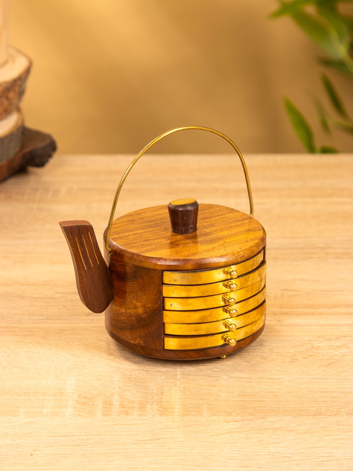 Подставка под горячее «Чайник», с золотыми вставками, набор 6 шт., 10×12×8 см, дерево шишам — Характеристики