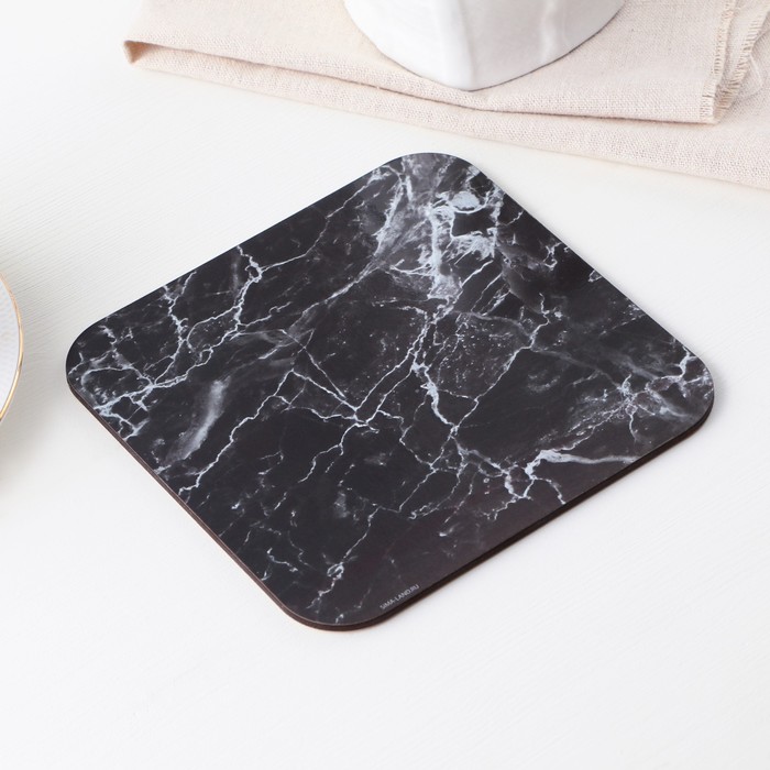 Подставка под горячее «Чёрный мрамор», 15×15 см