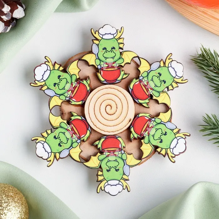 Подставка под горячее "Дракон повар", 12х12 см, микс дерева — Характеристики