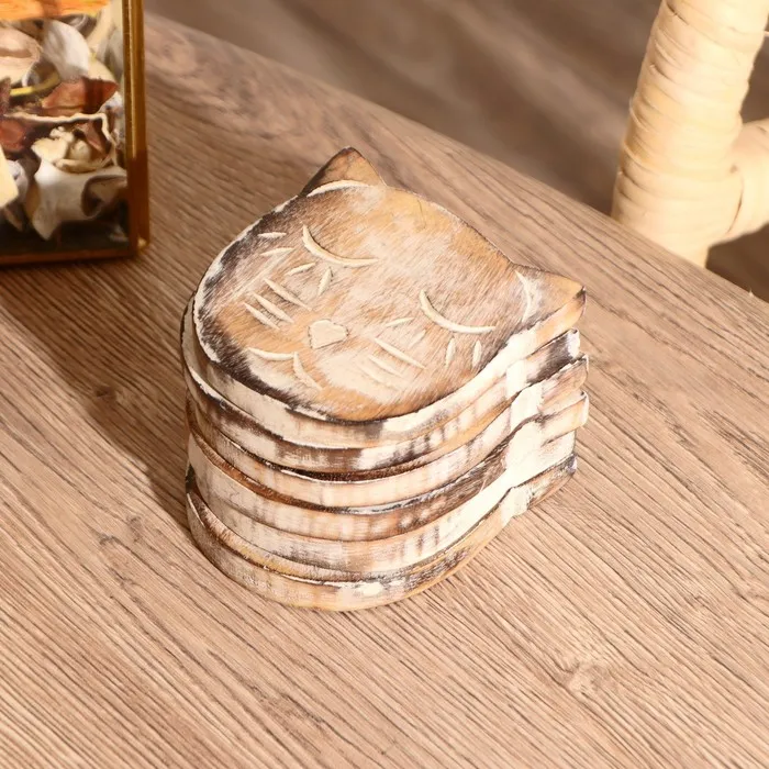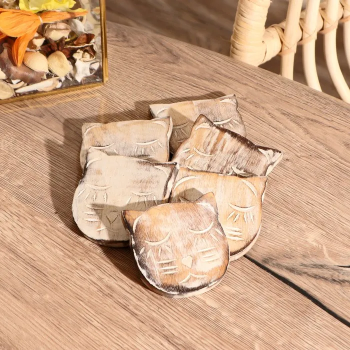 Подставка под горячее «Кошка», 6 шт, 12×9×8.5 см, дерево — Характеристики