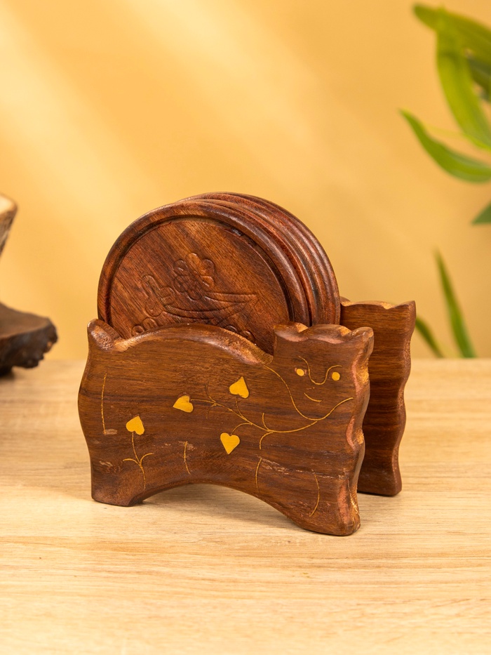 Подставка под горячее «Кошка», набор 6 шт., 11.5×13×6.5 см, дерево шишам — Характеристики
