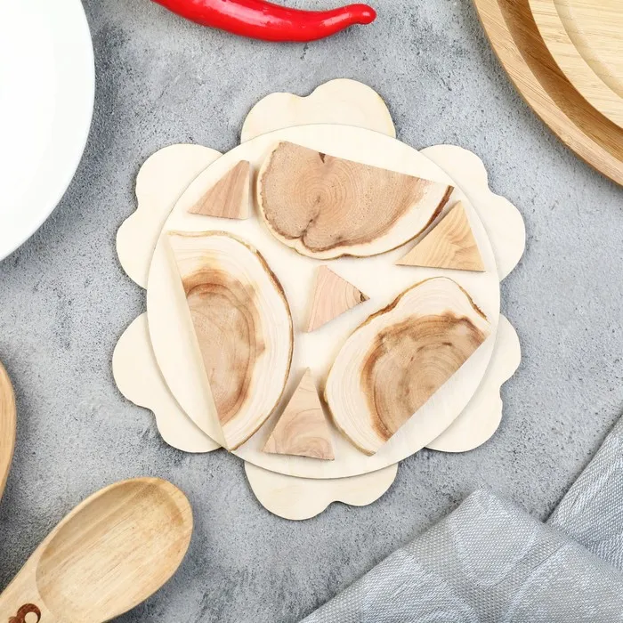 - Фигурная форма: нестандартный силуэт выделяет подставку среди обычных решений и делает её частью стилистического оформления стола.