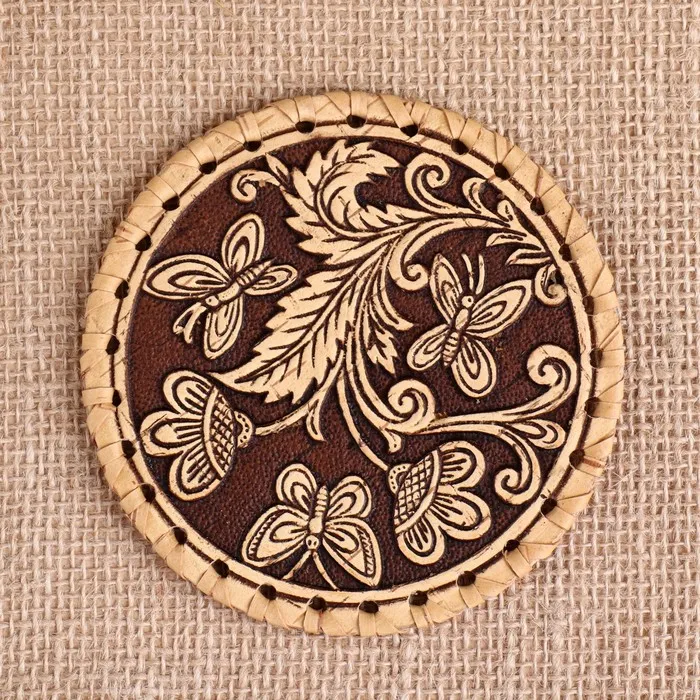 Подставка из бересты с изящным рисунком «Вальс бабочек» объединяет в себе традиционное мастерство и современную функциональность. Её фигурная форма и теплый коричневый оттенок создают атмосферу уюта и природной гармонии, превращая каждую трапезу в маленький праздник.