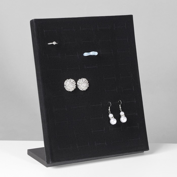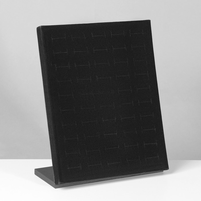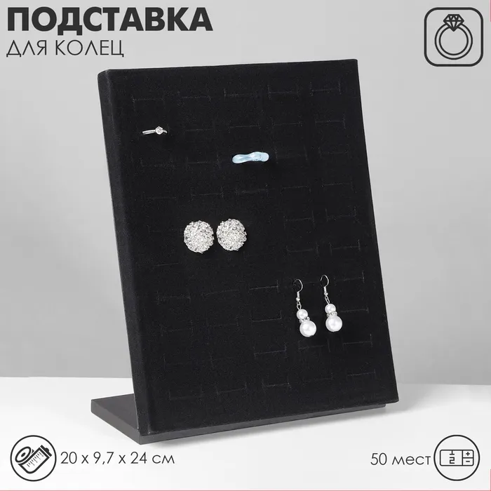 Подставка под кольца на 50 мест, флок, цвет чёрный, размер 20×9,7×24 см — это идеальное решение для хранения и демонстрации ваших колец и других мелких украшений. Благодаря стильному чёрному цвету и мягкой поверхности флокированного материала, эта подставка придаст вашим украшениям элегантный и аккуратный вид. Она подходит как для личного использования, так и для организации витрин в ювелирных магазинах, салонах или на выставках.