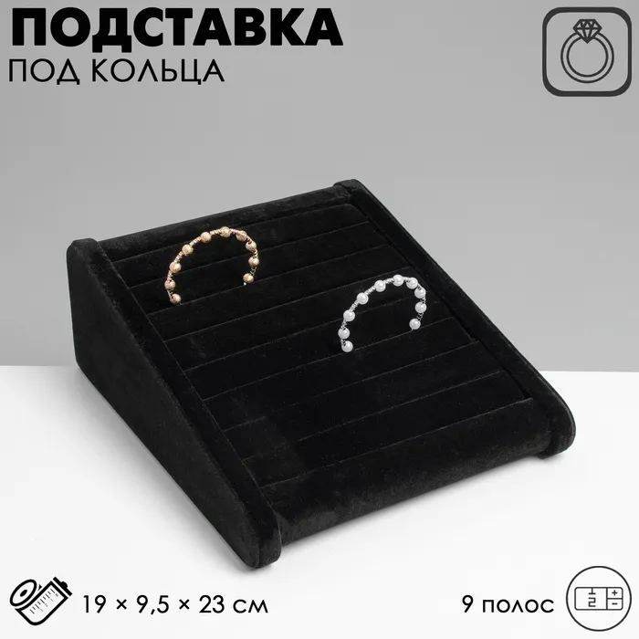 Подставка под кольца горка, 9 полос, 19×23×9.5 см, цвет чёрный — Характеристики