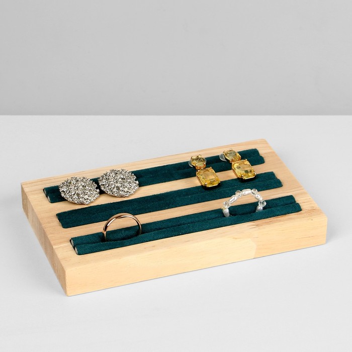 Подставка под кольца QF , 3 полосы, дерево, 15×10×2 см, цвет зелёный — Характеристики