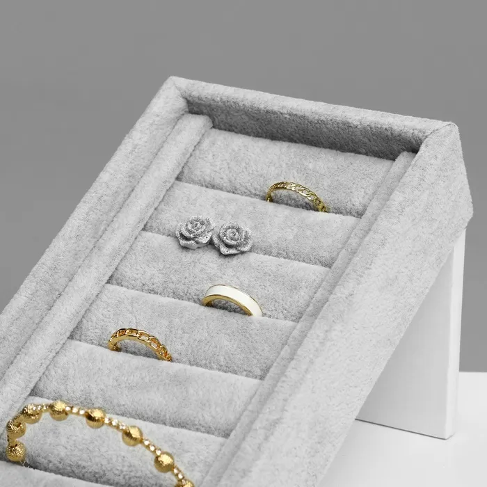 Подставка под кольца QF6 полос, флок, 10×10,5×18 см, цвет серый — Характеристики