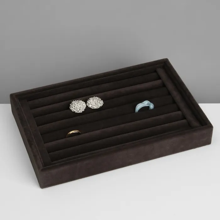Подставка под кольца QF7 полос, флок, 22,5×15×3 см, цвет серый графит — Характеристики