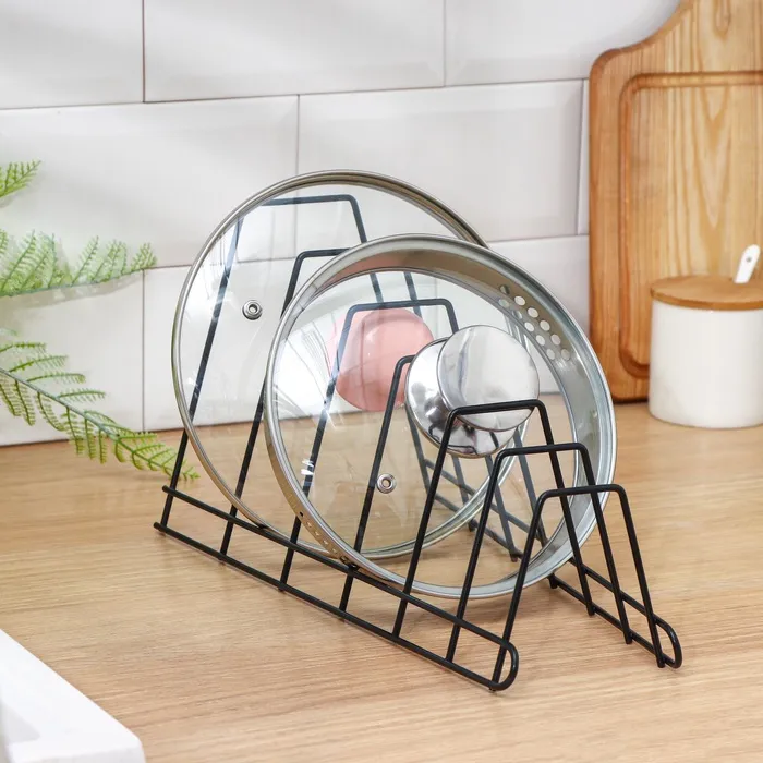 Наверняка каждая хозяйка хоть раз задавалась вопросом: «Как и где хранить многочисленные крышки от сковороды и кастрюли?» Ведь они слишком громоздкие для обычных посудосушителей и занимают много места. Мы придём на помощь в этой сложной ситуации! Подставка станет настоящим спасением в условиях ограниченного пространства.
