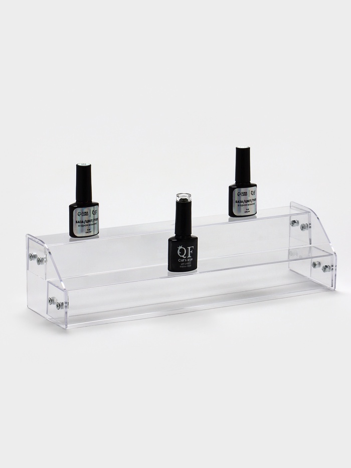 Подставка под лаки на 2 этажа, размером 31×9×7,5 см, изготовлена из оргстекла толщиной 2 мм. Этот стильный и функциональный аксессуар идеально подходит для хранения и демонстрации лаков для ногтей. Двухъярусная конструкция позволяет разместить большое количество флаконов, обеспечивая удобный доступ и эстетичный вид.