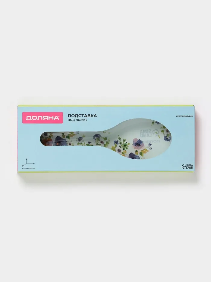 Подставка под ложку Доляна «Букет незабудок», 23.5×8.3×1.5 см, стекло, рисунок — Характеристики